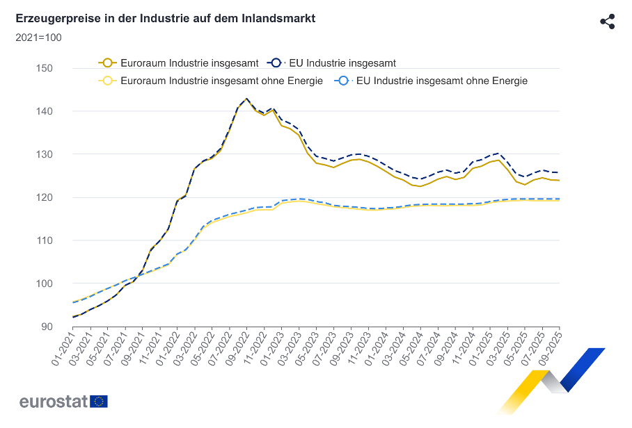Offensichtlich ist das in der Industrie, die in Deutschland immer noch eine entscheidende Rolle spielt. In der Industrie sind die Erzeugerpreise ohne Energie seit Beginn des Jahres 2023 bis zum September dieses Jahres absolut stabil (Abbildung 2).