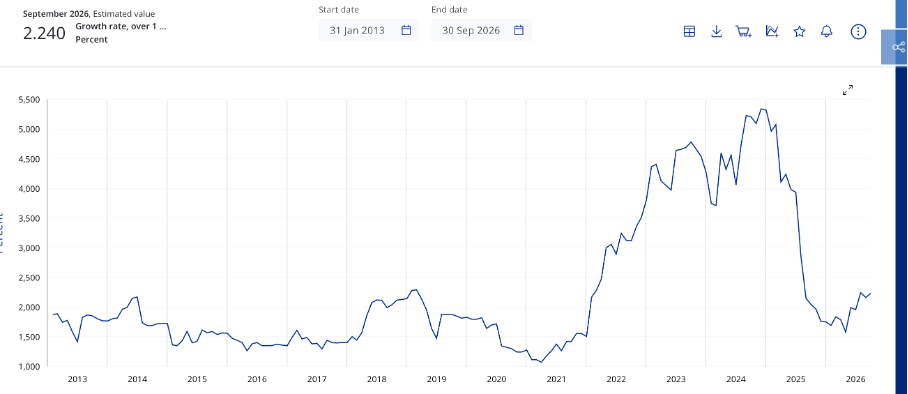 Und das ist der Fall, obwohl, wie die Abbildung 3 zeigt, die Löhne in der EWU in dieser Zeit durchaus mit Raten von vier oder fünf Prozent pro Jahr gestiegen sind. Der sogenannte wage tracker der EZB zeigt die grundlegende Veränderung der Lohndynamik, die sich nach dem temporären Preisanstieg in den Jahren 2021 und 2022 eingestellt hatte. Mittlerweile ist die Lohnentwicklung zwar wieder unter der Zwei-Prozent-Marke gefallen, aber auch das ist ein erheblicher Wert, wenn es vielen Unternehmen vollkommen unmöglich ist, die Preise anzuheben.